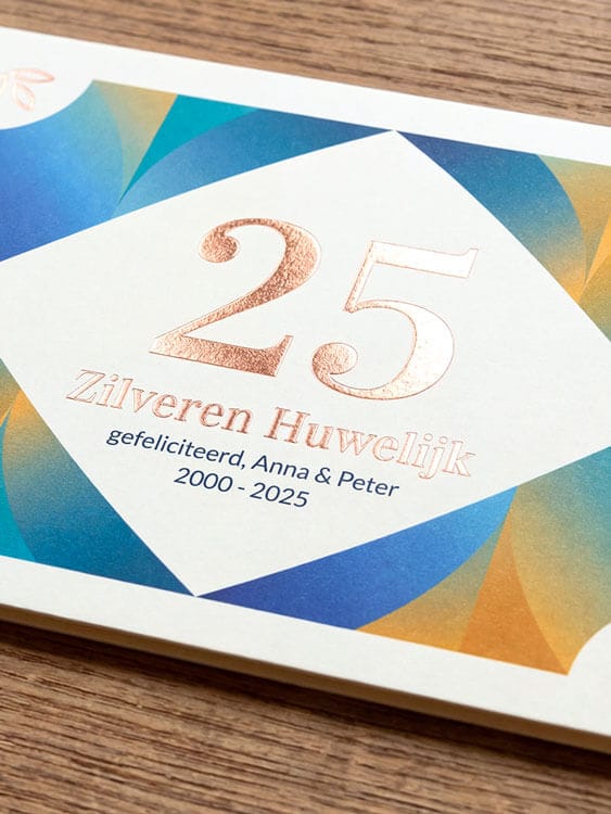 Kies voor de moderne, haarscherpe glans van vlakke folie, of ga voor authentieke hotfoil waarbij we de metallic glans met onze degelpersen prachtig voelbaar in het papier drukken.